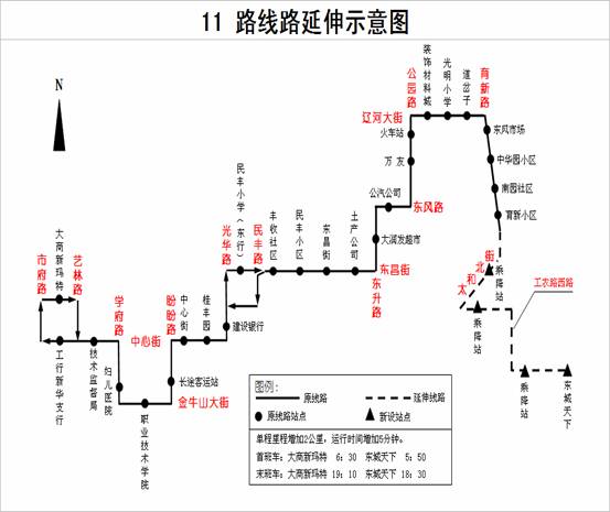 三、“東城天下”首班車時間調(diào)整為5:50,“大商新瑪特”末班車時間調(diào)整為19:10。